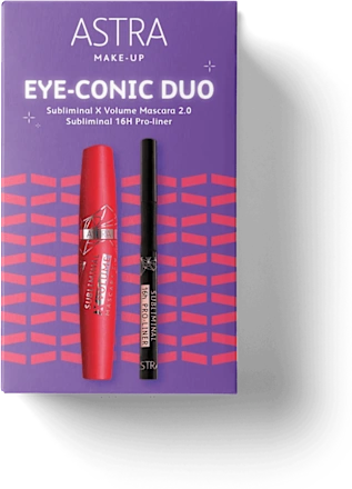 Il set Astra Make-Up Eye-Conic Duo è l’ideale per chi desidera uno sguardo intenso e definito, con un tocco di volume e precisione. Questo set è composto da due prodotti must-have: il Mascara Occhi Subliminal X Volume Nero 2.0, che dona alle ciglia un volume mozzafiato, e l’Eyeliner Subliminal 16H Pro-Liner Nero Intenso, per un contorno occhi perfetto e a lunga tenuta. Insieme, questi due prodotti ti permettono di creare un look occhi definito, audace e irresistibile.