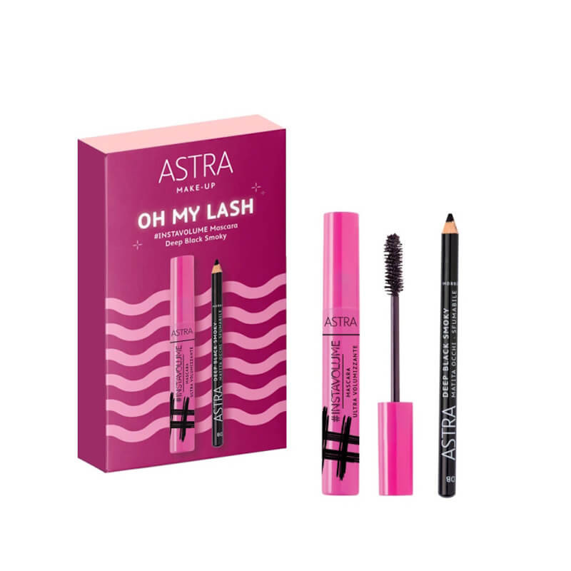 Il set Astra Make-Up Oh My Lash è il duo perfetto per ottenere uno sguardo intenso e magnetico. Composto dal Mascara Occhi Nero Instavolume, che dona volume e lunghezza alle ciglia, e dalla Matita Occhi Nera Sfumabile Deep Black Smoky, che permette di definire lo sguardo con un effetto smoky seducente, questo set è l’ideale per creare un trucco occhi perfetto e a lunga durata.